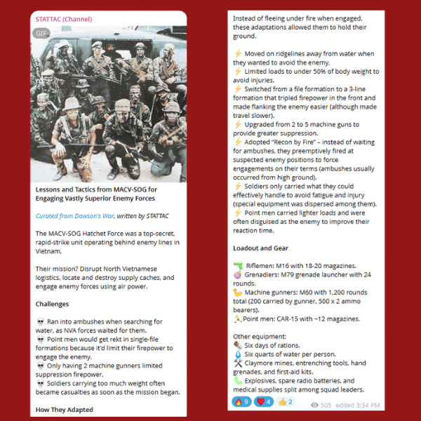 We autistically consume content about tactics, historical events, and real SHTF scenarios. Then, we breakdown the lessons we learn in a short, digesetible format.